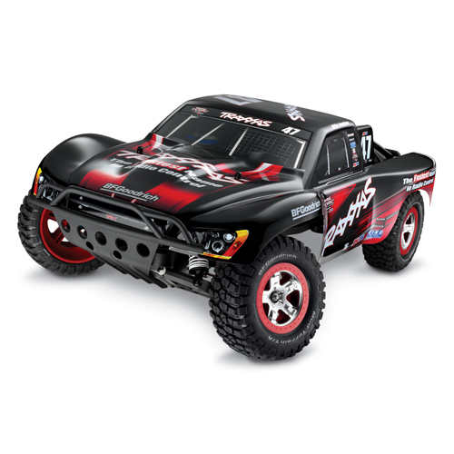 Радиоуправляемый внедорожник Traxxas Slash (TQ) - TRX58034 имеет задний привод. Машина на пульте управления оснащена мощным электродвигателем Тraxxas Titan 550 12T, регулятором оборотов Traxxas XL-5 и емким аккумулятором NI-MH 8.4v 3000mAh. Это позволяет авто разогнаться до 50 км/ч. Кроме того, дизайн кузова радиоуправляемого грузовика в точности повторяет оформление реальных автомобилей, участвующих в гонках.