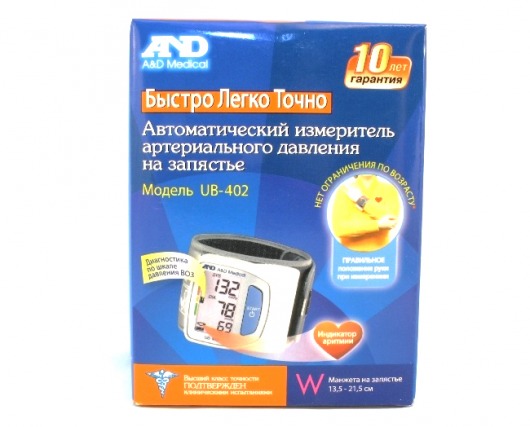 Электронный тонометр на запястье AnD UB-402 — надежный высокотехнологичный прибор для измерения артериального давления и частоты пульса. Это легкий и компактный тонометр, который удобно брать с собой по необходимости. Прибор довольно прост в управлении и при этом способен измерить сердечные показатели всего за 30 секунд.