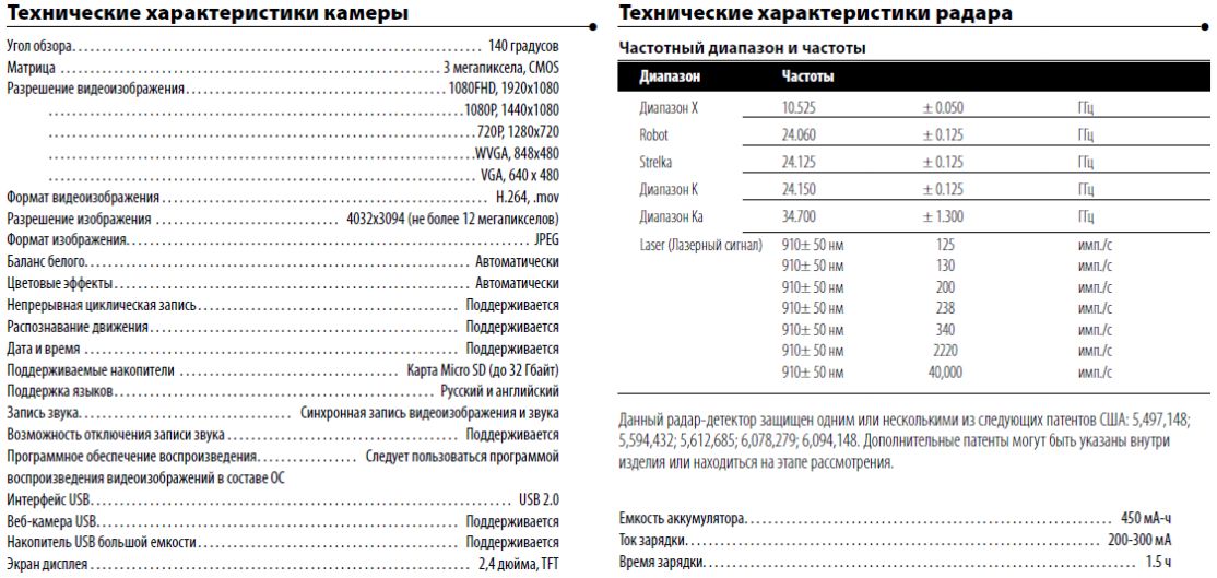 • обнаруживает любые российские радары и лазерные измерители скорости (радары X-, K-, Ka-диапазонов, Стрелка, Робот, Кордон, Беркут, Искра, Радис, Визир, Амата, ЛИСД, Арена, Кречет и другие);