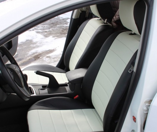 Чехлы автомобильные для Mazda 3, седан/хэтчбек 09-13 г.в. (черно-белые, экокожа)