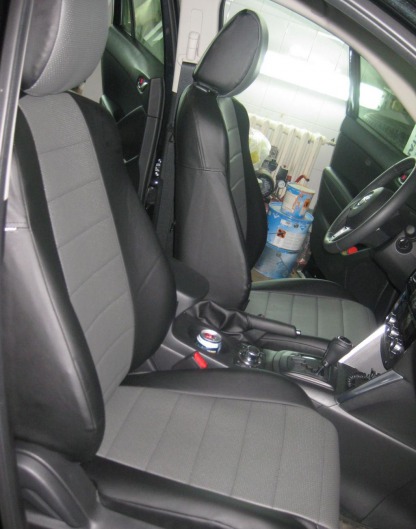 Вопросы и отзывы про Чехлы автомобильные для Mazda CX-5 (черно-темно-серые, экокожа)