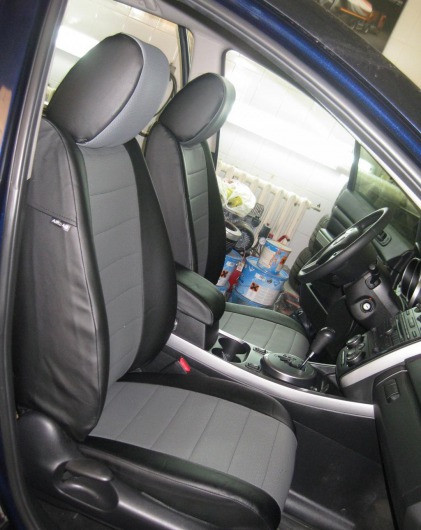 Вопросы и отзывы про Чехлы автомобильные для Mazda CX-7 (черно-темно-серые, экокожа)