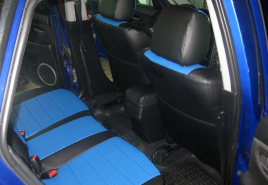Вопросы и отзывы про Чехлы автомобильные для Mazda MPV II, 7 мест (черно-синие, экокожа)