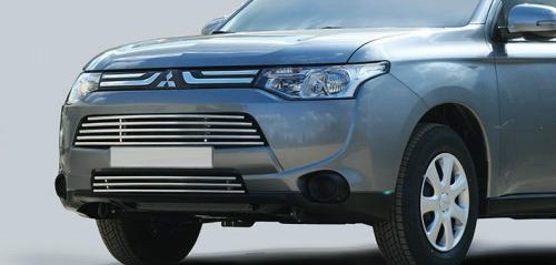 Тюнинг. Накладка на воздухозаборник Мицубиси Аутлендер, несмотря на небольшой размер, сделает «лицо» вашего автомобиля еще более стильным и привлекательным., особенно в сочетании с накладкой на решетку радиатора Mitsubishi Outlander.