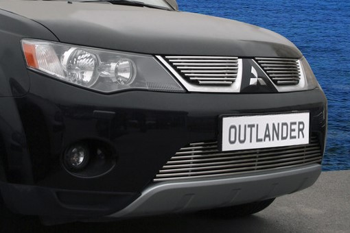 Тюнинг. Накладка на воздухозаборник Мицубиси Аутлендер, несмотря на небольшой размер, сделает «лицо» вашего автомобиля еще более стильным и привлекательным., особенно в сочетании с накладкой на решетку радиатора Mitsubishi Outlander XL.