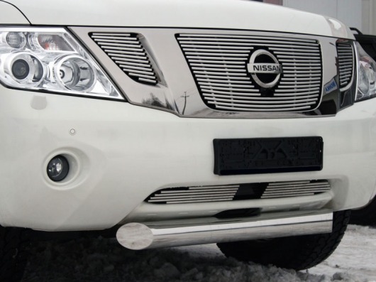 Защита воздухозаборника хром для Nissan Patrol — это декоративная накладка на воздухозаборник, которая защищает систему отопления и вентиляции автомобиля от мусора, грязи, снега, дождя и т.д. – всего, что может повредить фильтр воздухозаборника. Данная модель подходит для автомобилей Nissan Patrol от 2010 г.в. Изготовлен декоративный элемент воздухозаборника из нержавеющей стали и представляет собой 2 элемента из трубок диаметром 10 мм.