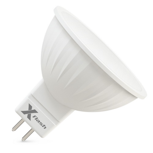 Светодиодная лампа X-FlashSpotlight MR16 GU5.3 имеет корпус из пластика и предназначена для общего и акцентного освещения. Лампа соответствует по форме, цоколю и размерам галогенным лампам MR16 и может применяться в любых светильниках, предназначенных для этого типа ламп. Использование светодиодов с высокой светоотдачей (от 85 лм/Вт) в лампах X-Flash позволяет получить увеличенные значения светового потока. Встраиваемые светодиодные лампы подходят для декоративных светильников, бра, помогают существенно снизить эксплуатационные расходы. Данная модель рассчитана на напряжение 220 В. Мощность диодной лампы X-Flash — 3 Вт., яркость — 250 Лм, угол освещения более 90°, а температура свечения – 4000 K (белый свет).