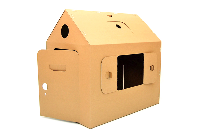 • Домик сделан из 3-слойного гофрокартона, состоит всего из 3-х деталей. Собрать его можно минут за 10 — просто закрепите конструкцию с помощью пластиковых стяжек (разумеется, вы получите их в комплекте). Ничего разрезать или прокалывать не нужно — детский игрушечный домик из картона полностью готов к установке и все необходимые отверстия в нем уже проделаны.