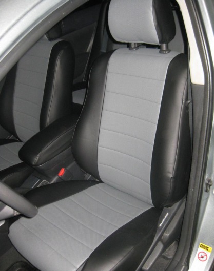 Вопросы и отзывы про Чехлы автомобильные для Toyota Avensis II, седан, 03-09 г.в. (черно-светло-серые, экокожа)