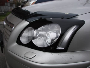 Данные защитные накладки на фары изготавливаются с учетом особенностей Toyota Avensis 2003-2006 г.в. и полностью соответствуют всем техническим требованиям. Чтобы установить защиту фар, вам не нужно покупать крепежи или сверлить кузов. Достаточно просто открыть капот, закрепить защиту внизу фары, а затем защелкнуть ее сверху. Это надежная защита фар от кражи: снять накладку при закрытом капоте просто невозможно.