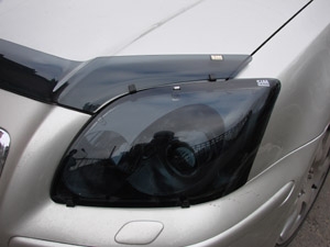 Защита передних фар для Toyota Avensis — это специальные зетемненные накладки на передние фары, по форме повторяющие их контуры. Защита фар автомобиля изготовлена из прочного поликарбоната предназначена для того, чтобы уберечь фары вашего авто от кражи и механических повреждений.