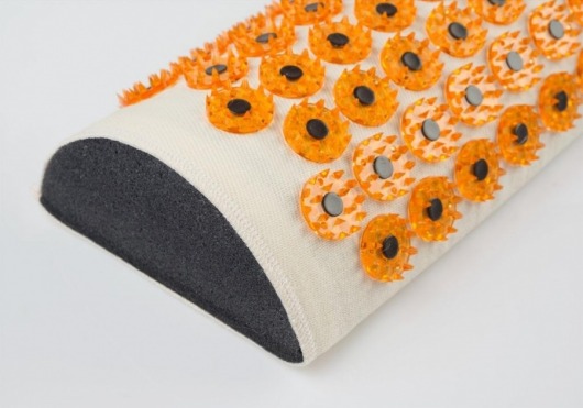 Аппликатор массажер Кузнецова "Тибетский" валик для шеи представляет собой набор округлых фишек желтого цвета, закрепленных на валикообразной поверхности. Фишки содержат в себе магнитные вставки и двойные иглы. Анатомическая форма валика обеспечивает равномерное воздействие на шею, а магнитные вставки усиливают лечебный эффект. Аппликатор-массажер предназначен для локального игольчатого массажа шейного отдела позвоночника. Массаж с аппликатором Кузнецова помогает снять мышечный спазм, скованность в шейном отделе позвоночника. Кроме того аппликатор используется при головной боли, повышении АД и бессоннице.