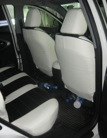 Вопросы и отзывы про Чехлы автомобильные для Toyota RAV-4 IV от 13 г.в. (бело-черные, экокожа)