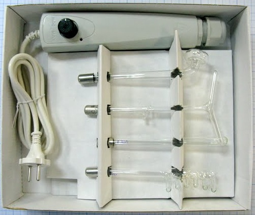 • прямой электрод предназначен для лечения внутриполостных заболеваний (наружного слухового прохода, полости носа и др.) и точечного воздействия на небольшие участки кожи (лечение небольших ранок, язвочек, угрей и т.д.);