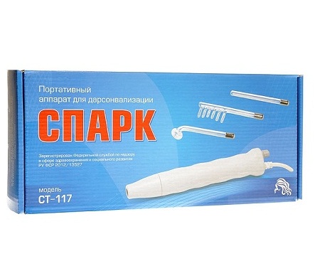 Аппарат дарсонваль Спарк СТ-117 на сегодняшний день является одним из самых популярных дарсонвалей в России! Лечебно-косметический дарсонваль Спарк-117 эффективно борется с проблемной и пористой кожей, гнойными воспалениями, остеохондрозом, радикулитом и многим другим. Вы также можете использовать его для уменьшения выпадение волос и улучшения их роста, устранения целлюлита и снятия болевых синдромов. Импульсный массажер Спарк СТ-117 абсолютно безопасен и прост в использовании. Зачем ложиться в больницу, если можно помочь себе самому?!