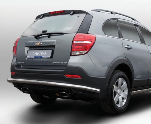 Труба на задний бампер Chevrolet Captiva защищает задний бампер автомобиля от различных механических повреждений при столкновениях на дороге и неудачных парковках. А кроме этого, защита заднего бампера для Шевроле Каптива — это дополнительная деталь тюнинга.