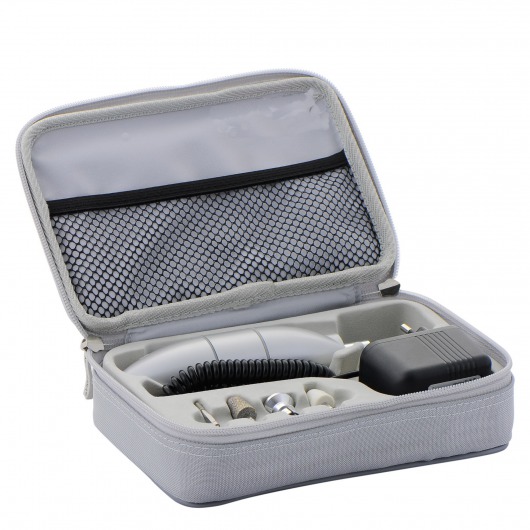 Набор просто в управлении, оснащен плавным регулятором скорости. Вы можете самостоятельно выбирать скорость вращения насадок от 1600 до 5000 оборотов в минуту.