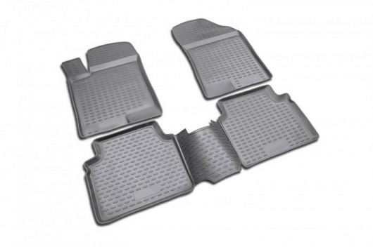 Полиуретановые коврики для автомобиля гладкие, приятные и не пропускают влагу. Черный цвет универсален и подойдет любому авто. В комплекте вы получите 4 коврика в салон автомобиля.