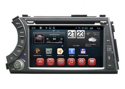 Штатное головное мультимедийное устройство позволяет прослушивать аудиофайлы различных форматов, просматривать видео (в том числе в HD-формате) и фотографии как с внутренней памяти устройства (8 Гб), так и с внешних носителей и SD карт памяти. Вы также можете слушать аналоговое или интернет-радио или смотреть видео онлайн. Или подключить цифровой ТВ-тюнер, чтобы смотреть цифровые каналы прямо на экране устройства. А еще у вас есть возможность подключить DVD-привод и смотреть фильмы и управлять DVD-меню прямо с сенсорного экрана магнитолы.