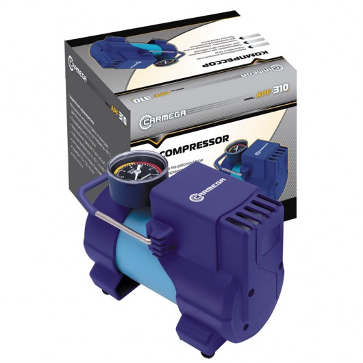 Автомобильный компрессор поршневого типа Carmega APF-310 предназначен для накачивания шин легкового автомобиля. Вместе с тем, благодаря набору из 3-х переходников, вы также можете без проблем накачать велосипедные шины, резиновые лодки, матрацы, спортивные мячи. При небольших размерах и массе автокомпрессор Carmega APF-310 имеет внушительную производительность — 35 л/мин. Специальное термореле защищает двигатель от перегрева — поршневой компрессор Carmega APF-310 автоматически выключится при нагреве свыше +85 °С. Наряду с этим компрессор для автомобиля APF-310 оснащен системой, обеспечивающей постоянную смазку двигателя, в связи с чем устройству длительное время не потребуется дополнительное техобслуживание.