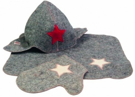 В комплект для сауны входит специальная рукавичка, которая поможет очистить поры вашего тела от грязи и шлаков, а также улучшит кровообращение во всем теле, что окажет благоприятное воздействие на весь организм в целом. Кроме того, в набор входит мягкий войлочный коврик, которым застилают лежанку. Таким образом, купив комплект для сауны из 3 предметов "Буденовка" вы сделаете свои походы в баню более комфортными