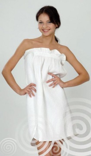 Парео для женщин — необходимый атрибут при посещении бань, саун и бассейнов, особенно общественных. Оно оснащено резинкой-липучкой для надежной фиксации на груди и регулировки размера. Его можно использовать и как домашнюю одежду.