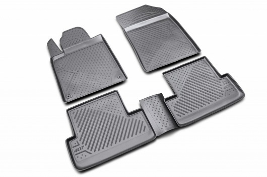 Полиуретановые коврики для автомобиля гладкие, приятные и не пропускают влагу. Черный цвет универсален и подойдет любому авто. В комплекте вы получите 4 коврика в салон автомобиля.