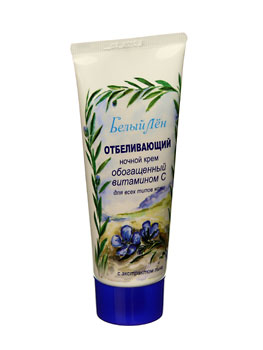 Крем создан на базе витамина С и природных активных компонентов растительного происхождения, которые отбеливают и выравнивают цвет кожи. Высокая концетрация витамина С позволяет замедлить процесс выработки меланина в глубоких слоях кожи и предотвращает появление пигментных пятен на коже. Крем эффективно работает в ночной период времени, когда кожа отдыхает, расслабляется и становится открытой для проникновения активного витамина С в глубокие слои кожи. Входящие в состав крема фруктовые кислоты, экстракты огурца, семян льна и зеленого чая усиливают отбеливающее действие крема, выравнивают цвет лица, наполняют кожу питательными веществами и влагой. Ежедневное использование отбеливающего крема предотвращает появление пигментных пятен, замедляет старение кожи, сохраняет оптимальный уровень влаги в коже и препятствует появлению морщин.