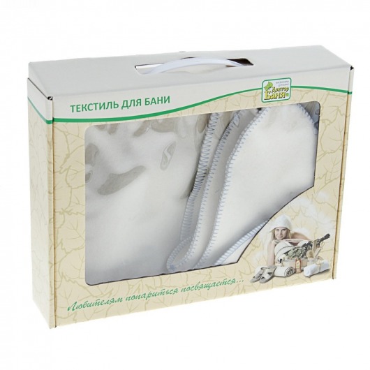 В этот набор для бани входит шапка, рукавичка и коврик, изготовленные из фетра. Они являются спутниками каждого любителя побаловать свое тело горячим паром.