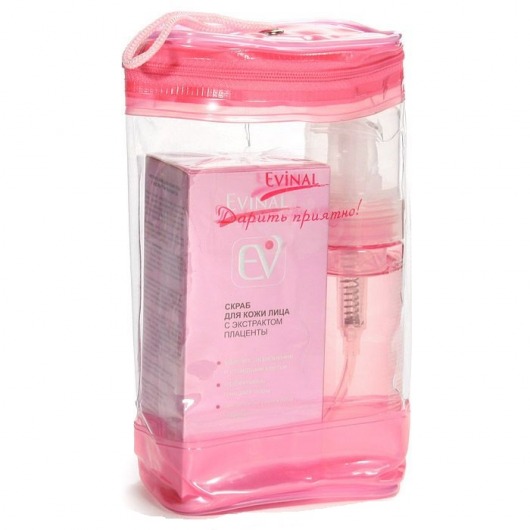 Подарочный набор Evinal состоит из мусса для умывания и скраба для кожи лица. Предметы набора упакованы в косметичку из мягкого пластика на застежке-молнии.