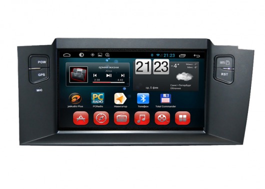 Штатное головное мультимедийное устройство позволяет прослушивать аудиофайлы различных форматов, просматривать видео (в том числе в HD-формате) и фотографии как с внутренней памяти устройства (8 Гб), так и с внешних носителей и SD карт памяти. Вы также можете слушать аналоговое или интернет-радио или смотреть видео онлайн. Или подключить цифровой ТВ-тюнер, чтобы смотреть цифровые каналы прямо на экране устройства. А еще у вас есть возможность подключить DVD-привод и смотреть фильмы и управлять DVD-меню прямо с сенсорного экрана магнитолы.
