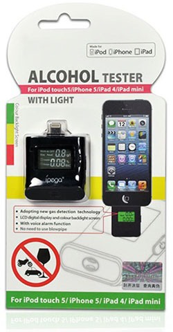 Цифровой алкотестер IPEGA совместим с iPhone 5/iPod touch 5G/iPad 4/iPad mini. Основное его преимущество в том, что он не требует подзарядки, так как питается от мобильного телефона. Алкометр имеет компактные размеры (всего 50х38х10 мм), что позволяет носить его с собой в кармане.