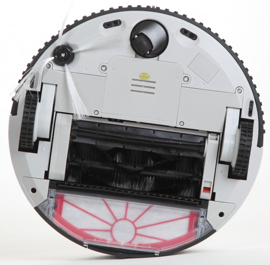 Устройство приводится в движение встроенным электрическим двигателем и опирается на три колеса: одно из них опорное, два других активные. Такая схема обеспечивает компактную и надежную маневренность по дому. Также двигатель приводит в действие 3 чистящие щетки пылесоса: 2 центральные турбощетки и 1 боковую щетки для более тщательной уборки.