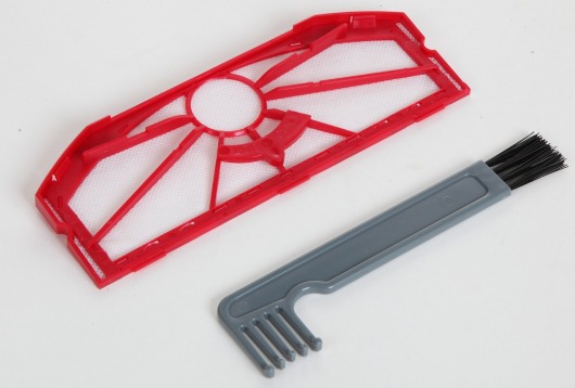 Помимо сухой уборки, данный робот-пылесос может производить и влажную уборку помещений. Для этого в комплекте есть специальная панель со специальной моющей салфетка из микрофибры. Ее достаточно смочить и присоединить к нижней части корпуса. Для очистки выходящего воздуха от пыли и грязи в приборе предусмотрен специальный воздушный фильтр.