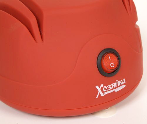 На корпусе расположена кнопка включения/выключения. Конструкция ножеточки продумана таким образом, что пользоваться устройством сможет абсолютно каждый, даже новичок. При этом станок для заточки ножей легко разбирается и чистится. Также для исключения скольжения по столу и большей безопасности ножеточка оснащена резиновыми присосками.