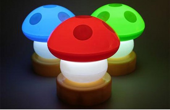 Включается и выключается светодиодная лампа "Грибочек" легким нажатием на шляпку.