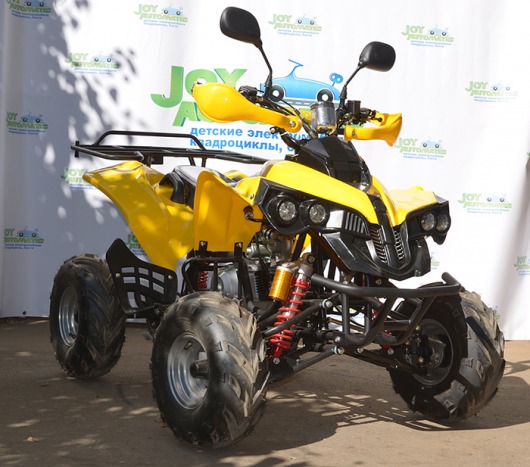 Бензиновый квадроцикл Joy Automatic LMATV-110E – это полноценное мощное транспортное средство с автоматической коробкой передач, которое способно развивать скорость до 60 км/ч за счет четырехтактного бензинового двигателя объемом 110 см³. Квадроцикл оснащен задним багажником, светящимися фарами, зеркалами заднего вида, специальной защитой рук и передним бампером, который защитит водителя от летящих из-под колес песка, грязи и гравия. Есть пульт дистанционного управления, с помощью которого можно в том числе активировать функцию сигнализации.