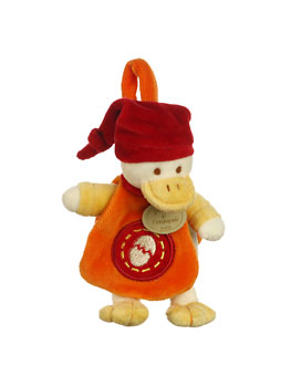 Смешной утенок станет верным другом Вашего малыша. Благодаря разъемной петле, его можно прикрепить на коляску или кроватку, подвесить на мобиль. Маленьким пальчикам будет очень полезно подергать клюв, колпачок и лапки нового приятеля, а благодаря яркой расцветке утенка можно начать изучать с малышом цвета.