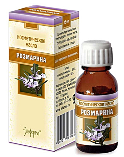 Состав косметического  масла: равные части эфирного масла розмарина и соевого масла. Оно легкое, илетучее, с приятным пряным запахом.