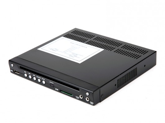 Эта модель имеет очень миниатюрные размеры – всего 50 мм толщиной. Благодаря этому, компактный прибор можно установить, не причинив ущерба другому автомобильному оборудованию. По своему желанию, монтировать проигрыватель можно в закрытом или открытом виде. Также во время установки вы сами выбираете наиболее удобное для вас положение устройства: вертикальное или горизонтальное. Вы даже можете поместить проигрыватель в бардачок! В любом случае, куда бы вы его ни установили, картинку можно вывести либо на потолочный монитор, либо на дисплей.