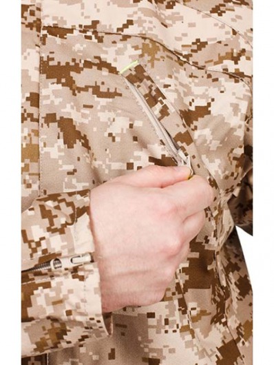 • 4 кармана на куртке: 2 нагрудных скошенных на молнии, 1 прорезной на молнии на левом рукаве и 1 объемный с клапаном на правом рукаве для телефона/рации; 2 многофункциональных накладных кармана на брюках.