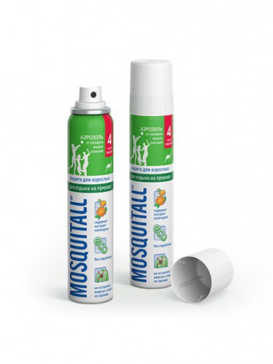 Аэрозоль MOSQUITALL для взрослых «Для отдыха на природе» надежно защитит вас от комаров, мошек и слепней.