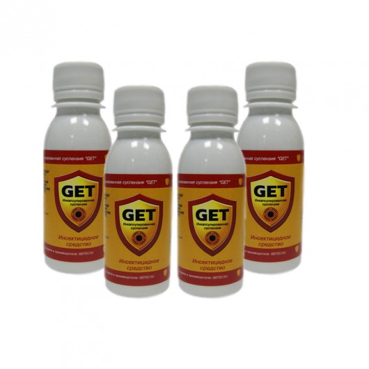 Основное преимущество инсектицида GET по сравнению с аналогичными препаратами заключается в особой технологиии производства, при котрой действующее вещество помещается в полимерные микрокапсулы. При этом инсектицид содержится внутри капсулы, а не снаружи, не имеет резкого химического запаха и абсолютно безвреден для людей. И главное — остаточное действие у этого препарата длится до полугода, так что на 6 месяцев можно забыть о насекомых, и только потом провести повторную обработку, если потребуется.
