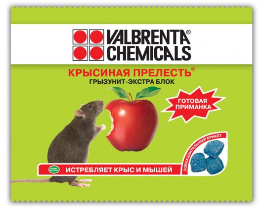 Готовая приманка для грызунов VALBRENTA CHEMICALS ГРЫЗУНИТ-ЭКСТРА БЛОК с удобной дозировкой — это доступное и надежное средство для борьбы с мышами и крысами в открытых местах обитания. Аппетитные твердые брикеты с ароматом ветчины не потеряют своих свойств при любой погоде. Состав компонентов подобран так, что ни одна крыса или мышь не устоит перед таким "угощением".