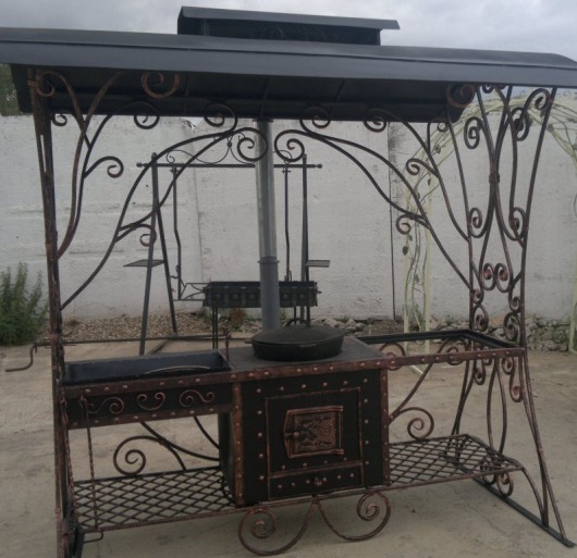 Кованый мангал для дачи с крышей Бухара — это не просто мангал, а целый мангальный комплекс, который сочетает в себе практичность, функциональность и оригинальный дизайн. Большой стационарный мангал с крышей, изготовленный из высокопрочного металла с применением ручной художественной ковки, станет той самой "изюминкой", которая выделит ваш дачный участок среди прочих. Превосходный вариант для профессионалов и настоящих ценителей дачного отдыха.