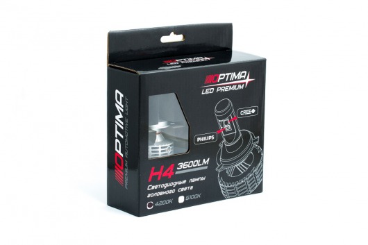 Светодиодная лампа Optima Premium H4 Cree 12-24V 5100K