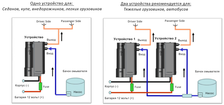 Устройство также увеличивает срок эксплуатации и качество работы щеток стеклоочистителя. Это связано с тем, что горячая жидкость быстрее растворяет грязь и лед, уменьшает количество абразивных частиц, которые контактируют со щетками.