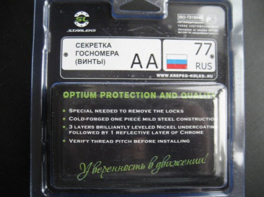 Секретки на номера (винты) изготовлены из хромированной стали. В комплект входит четыре винта и ключ. Размер винта 6х1.0х12мм (цилиндрическая головка). Можно применять не только для крепления автомобильных номеров, но и для антивандальной защиты вывесок, табличек, домофонов, кодовых замков и прочих предметов, требующих дополнительную защиту от несанкционированного завладения или порчи.