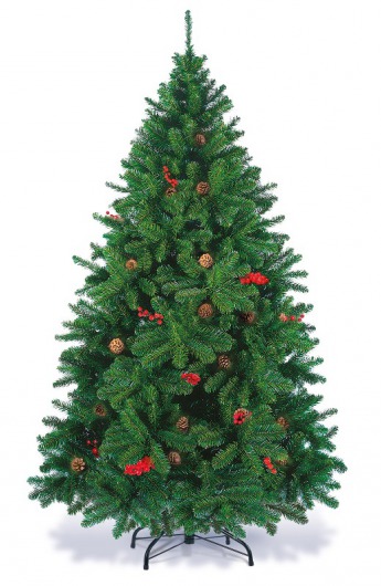 Искусственная сосна «Новогодняя сказка» от ЕлкиТорг по внешнему виду совершенно неотличима от настоящей живой ели. Стройный конусовидный силуэт и пушистая зеленая хвоя с настоящими еловыми шишками и веточками рябины только подчеркивают это сходство. Такая елка высотой в 2,1 м станет настоящим украшением для вашего дома или офиса.
