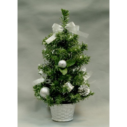 Елка с украшениями от Ели PENERI уже наряжена и готова дарить вам праздничное настроение — такой вариант обязательно придется по душе тем, у кого не всегда есть время украшать елку. Сочетание зеленой хвои и гармонично подобранных серебристых украшений станет отличным праздничным дополнением к любому интерьеру. А серебристый горшочек вместо обычной подставки не только делает композицию еще более оригинальной и законченной, но и позволяет поставить мини-елку на стол или на подоконник, что особенно удобно для небольших помещений. Тем более что такая елка высотой 40 см займет совсем немного места.